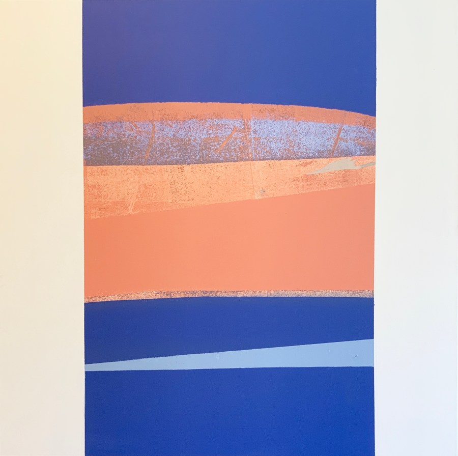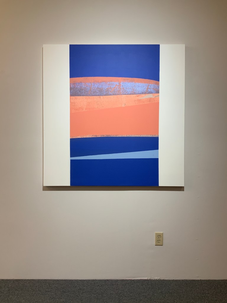 Though ‘Reservoir’ appears at first glance to be an abstract painting, it actually evokes deep intimations of a serene high mountain desert landscape consisting of sky, mountain, land and water. Technically, paintings with a subject matter are not, by definition, abstract. So, it might be more accurate to say that ‘Reservoir’ is a landscape painting painted in an abstract style.