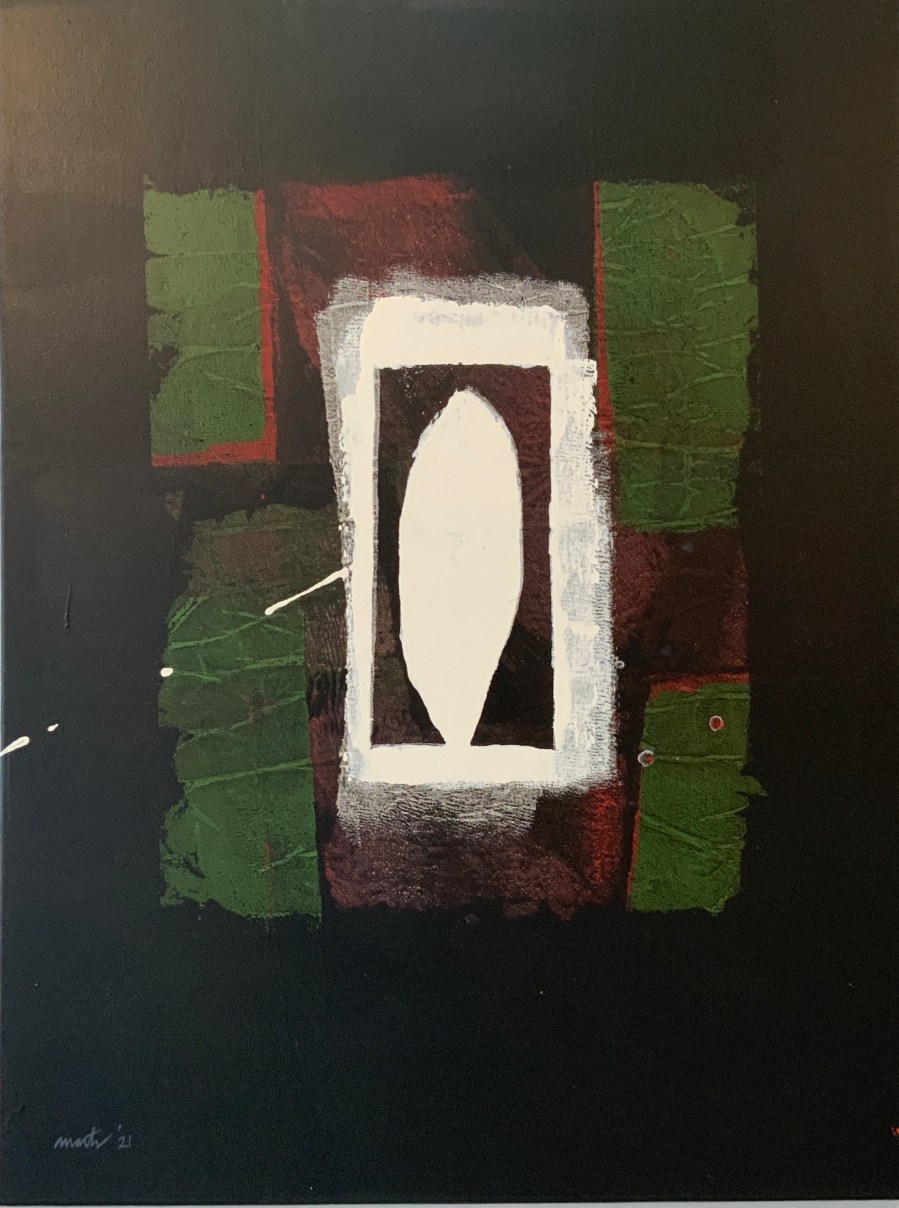 ‘WHITE PORTAL’ symbolizes a threshold of sorts, a doorway or perhaps even a more extended process of passage from one domain to another. A being of immense light stands in the center of this portal. Depending upon how it appears to the viewer, the figure can be seen as either coming or going. He/she could be either emerging from the background or entering into it. Your intuitive sense of which direction the being is traveling can potentially reveal a great deal about your own current trajectory in life. A portal is no small thing. They don’t exist everywhere and we seldom actually encounter one. Their presence is an indicator of monumental, potentially life altering changes, the kind of changes we all profess to want the most yet simultaneously fear the most. A good question to contemplate when you look at the image in this painting is, do you currently find yourself in a process of coming or going? Or perhaps both?